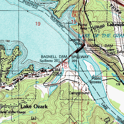 The Lake of the Ozarks is a large reservoir created by impounding the Osage River in the northern part of the Ozarks in central Missouri. Extents of three smaller tributaries to the Osage, the Niangua River, Grandglaize Creek, and Gravois Creek, are included in the impoundment. ... Read Article